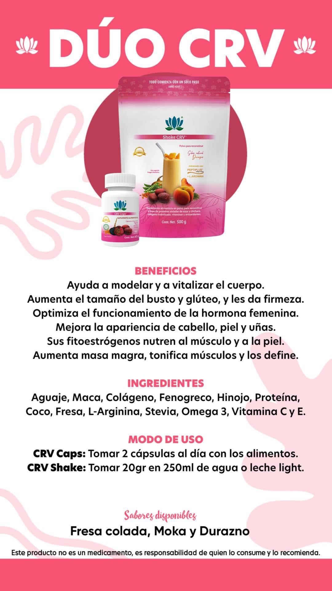 -CRV Caps: Tomar 2 capsulas al día con los alimentos.