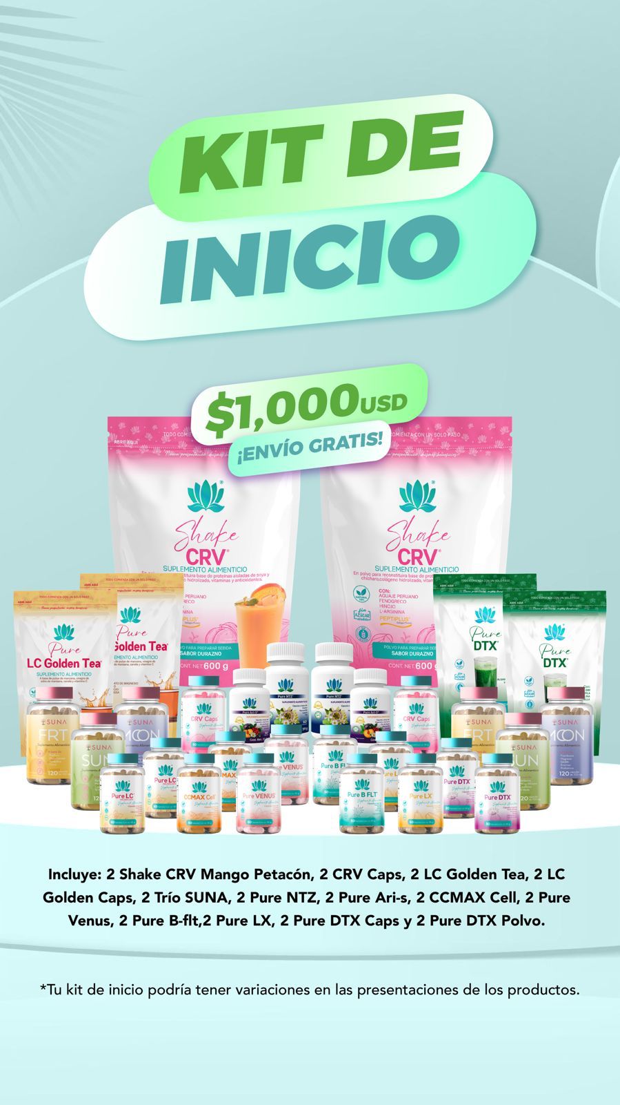 *TU KIT DE INICIO PODRIA TENER VARIACIONES EN LA PRESENTACION DE LOS PRODUCTOS.*